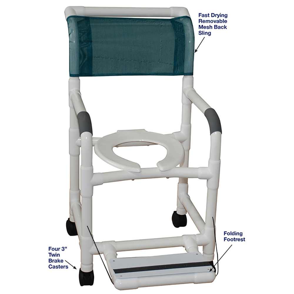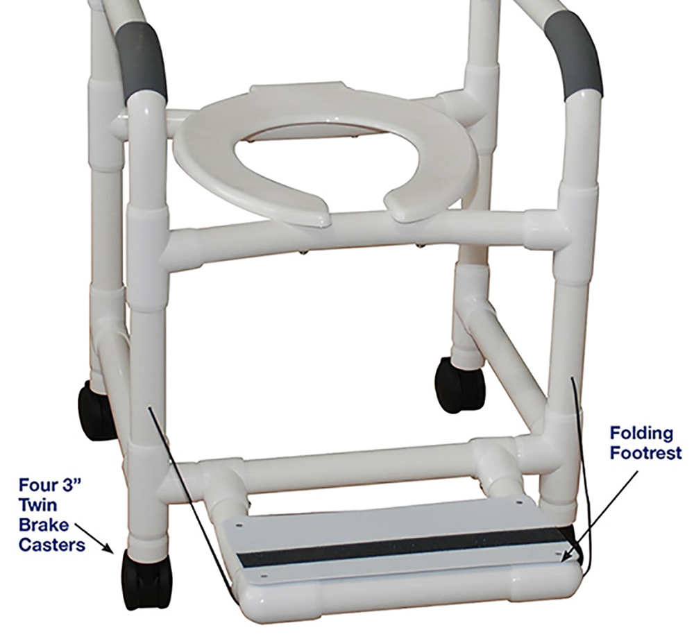 Healthcare Grade, Deluxe Elongated Open Front Seat Enhances Resident Comfort, Safety Handgrips, Push/Pull Handle And Fast Drying Removable Mesh Back/Sling, User Friendly Folding Footrest Prevents Foot Dragging And Entrapment, Reinforced At All Stress Related Areas.