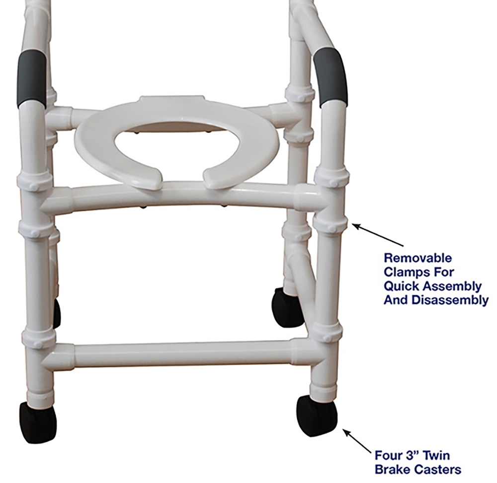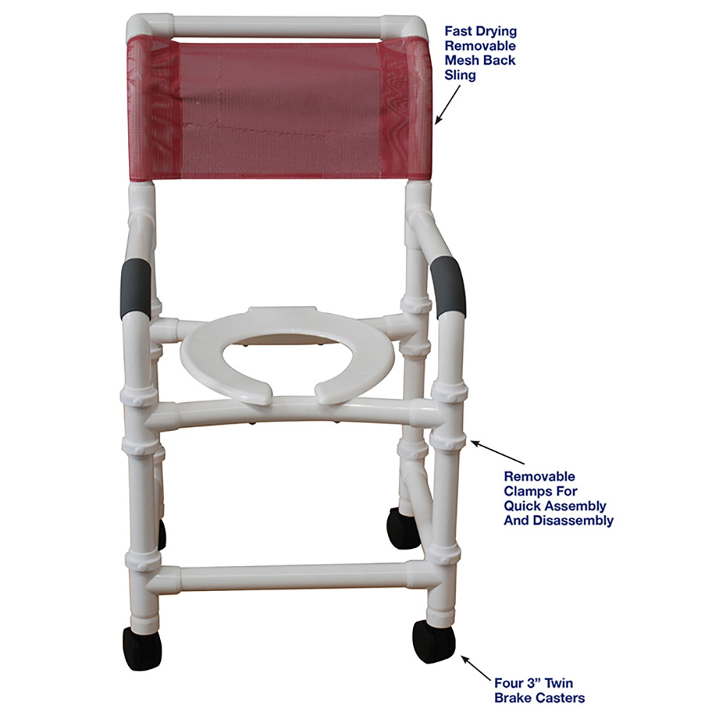 Healthcare Grade, Deluxe Elongated Open Front Seat Enhances Resident Comfort, Safety Handgrips, Push/Pull Handle And Fast Drying Removable Mesh Back/Sling, Knockdown Shower Chair, Reinforced At All Stress Related Areas.