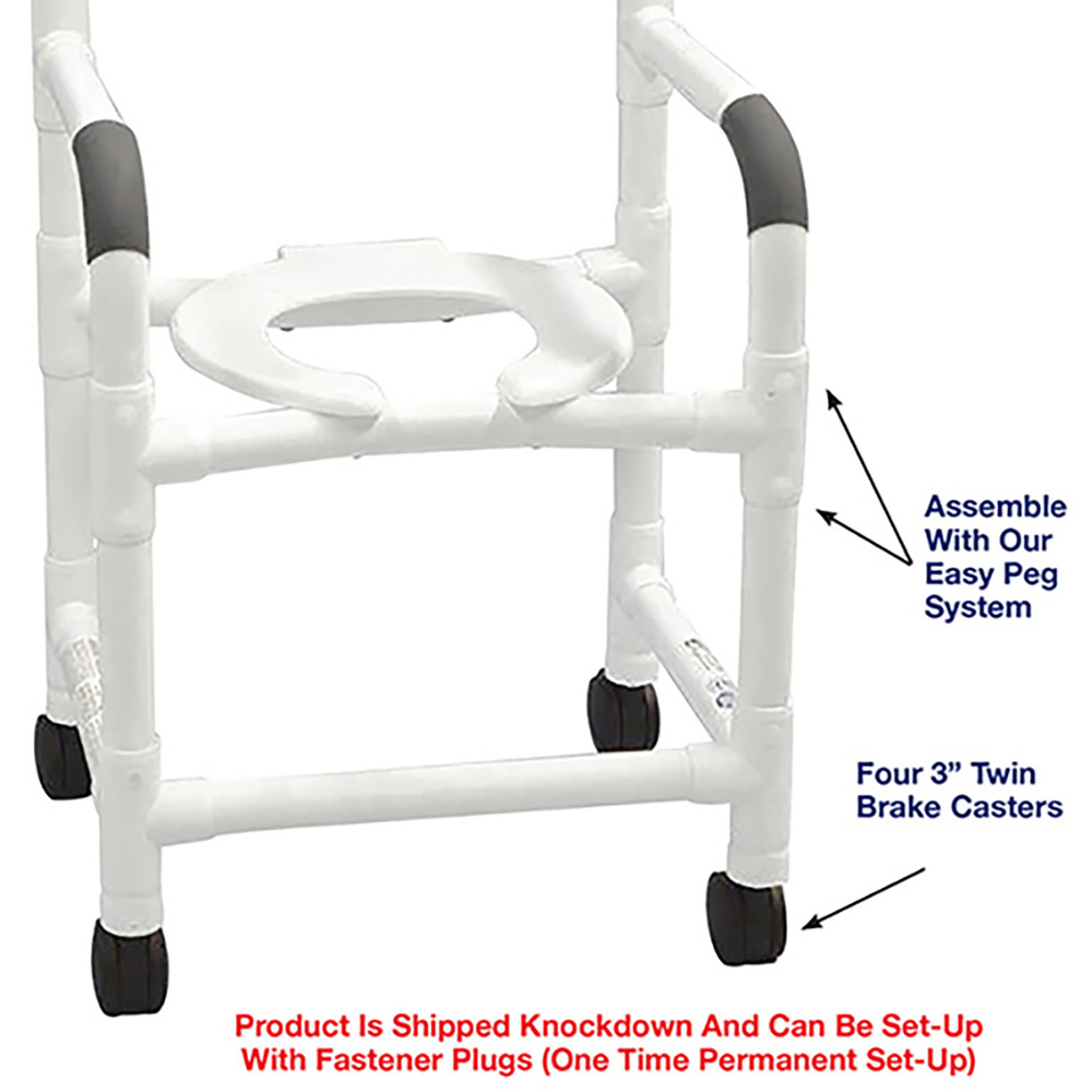 Healthcare Grade, Deluxe Elongated Open Front Seat Enhances Resident Comfort, Safety Handgrips, Push/Pull Handle And Fast Drying Removable Mesh Back/Sling, Knockdown Shower Chair, Reinforced At All Stress Related Areas.