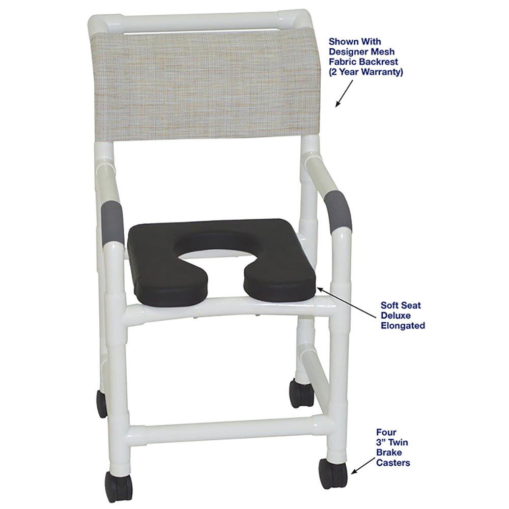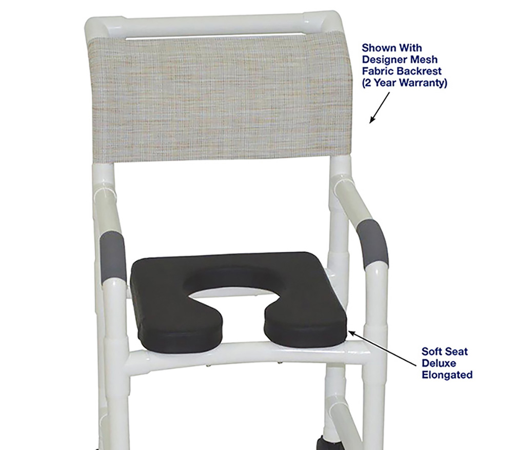Healthcare Grade, Deluxe Elongated Open Front Soft Seat Enhances Resident Comfort, Safety Handgrips, Push/Pull Handle And Fast Drying Removable Mesh Back/Sling, Reinforced At All Stress Related Areas.