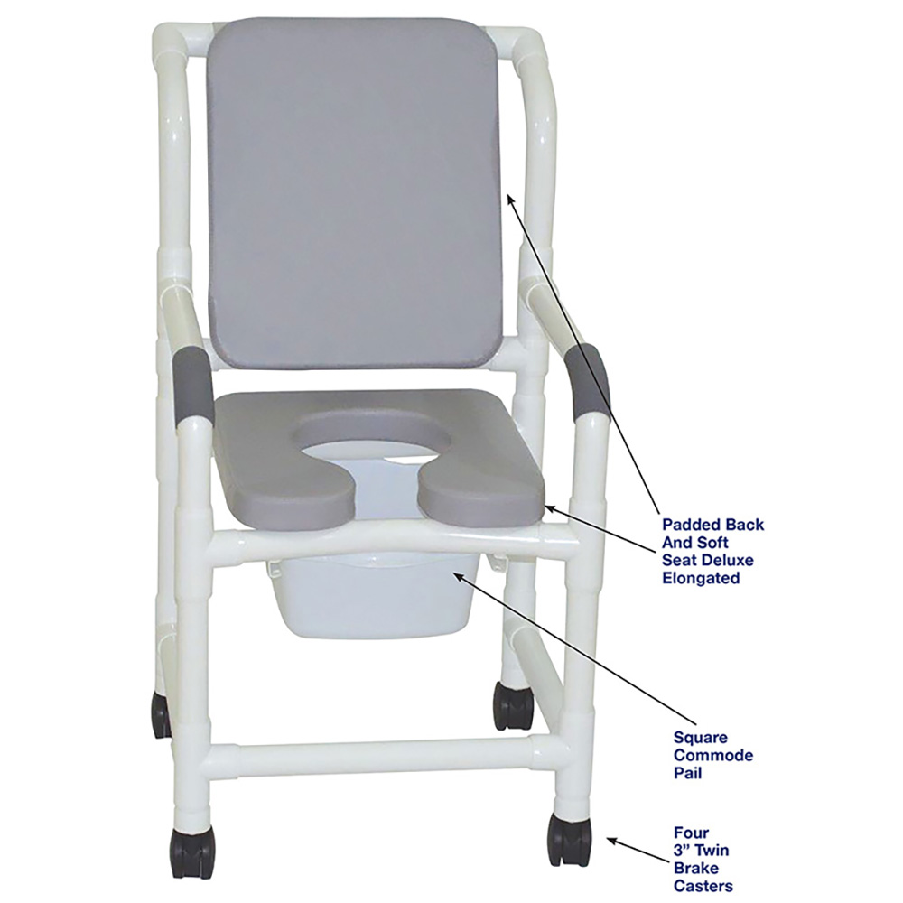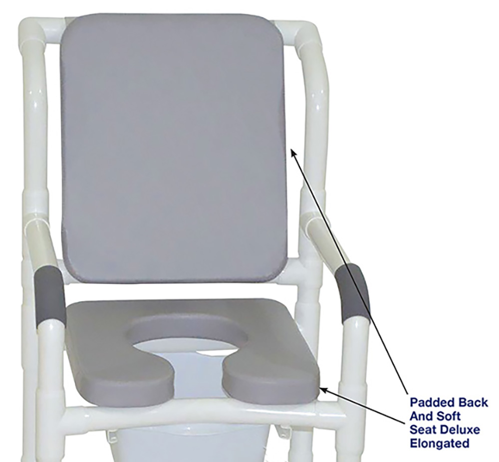 Shower Chair With Grey Soft Seat Deluxe Elongated, Cushion Back And Square Pail