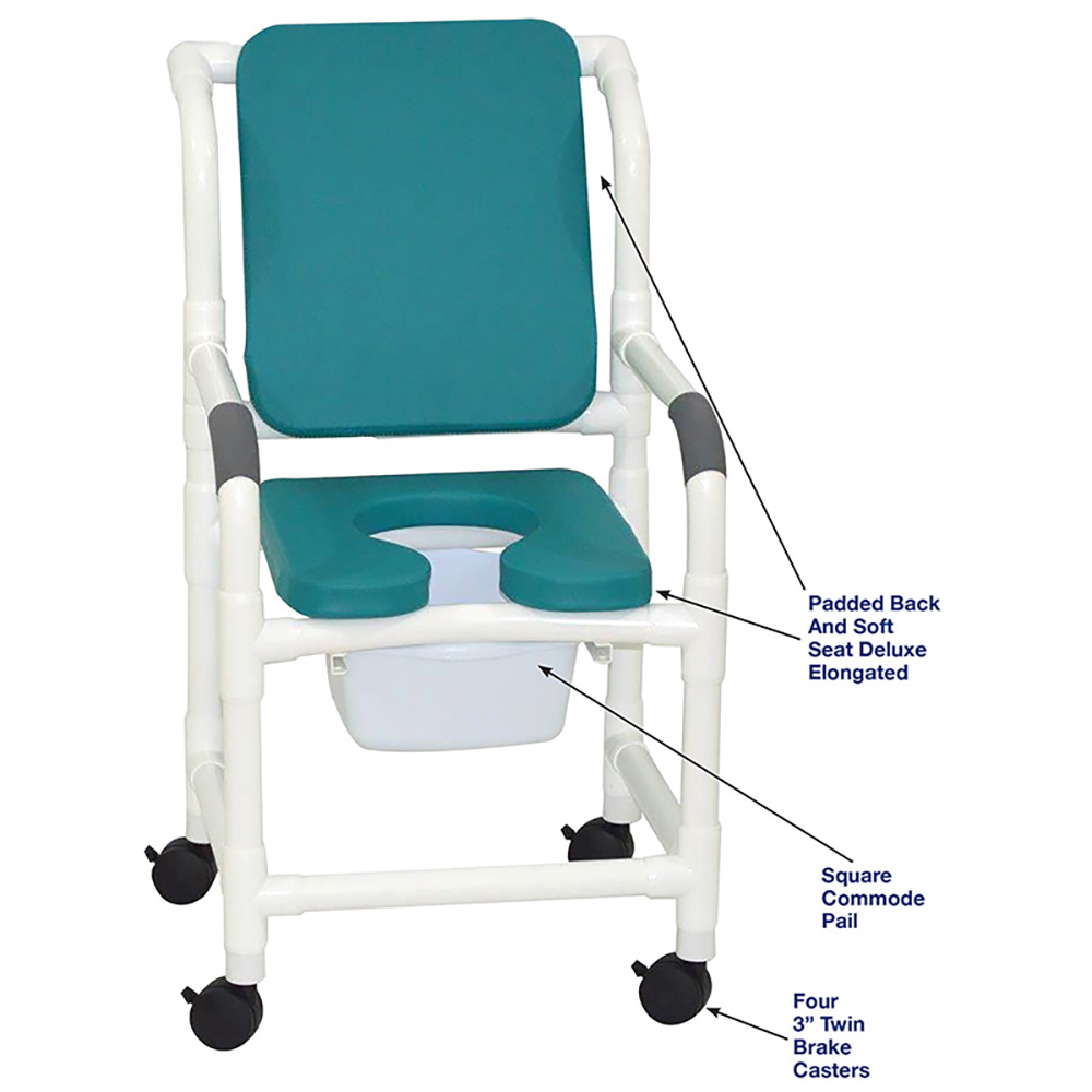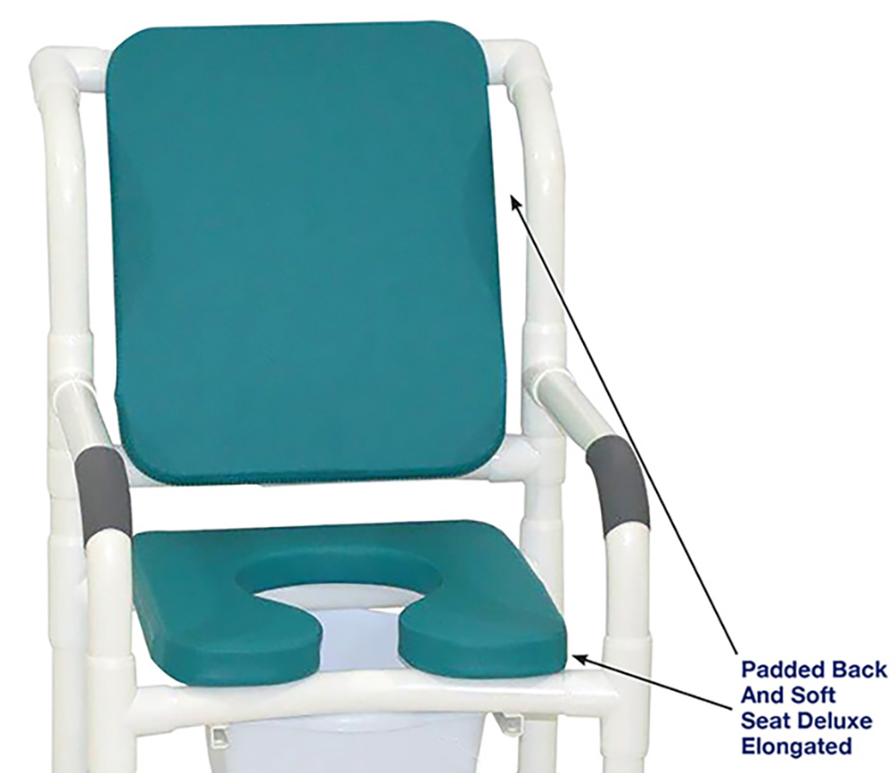 Shower Chair With Ocean Blue Soft Seat Deluxe Elongated, Cushion Back And Square Pail