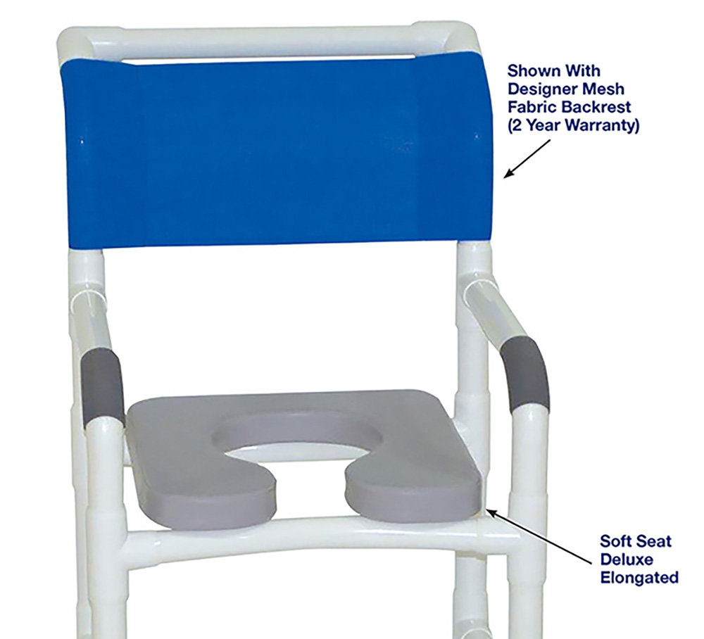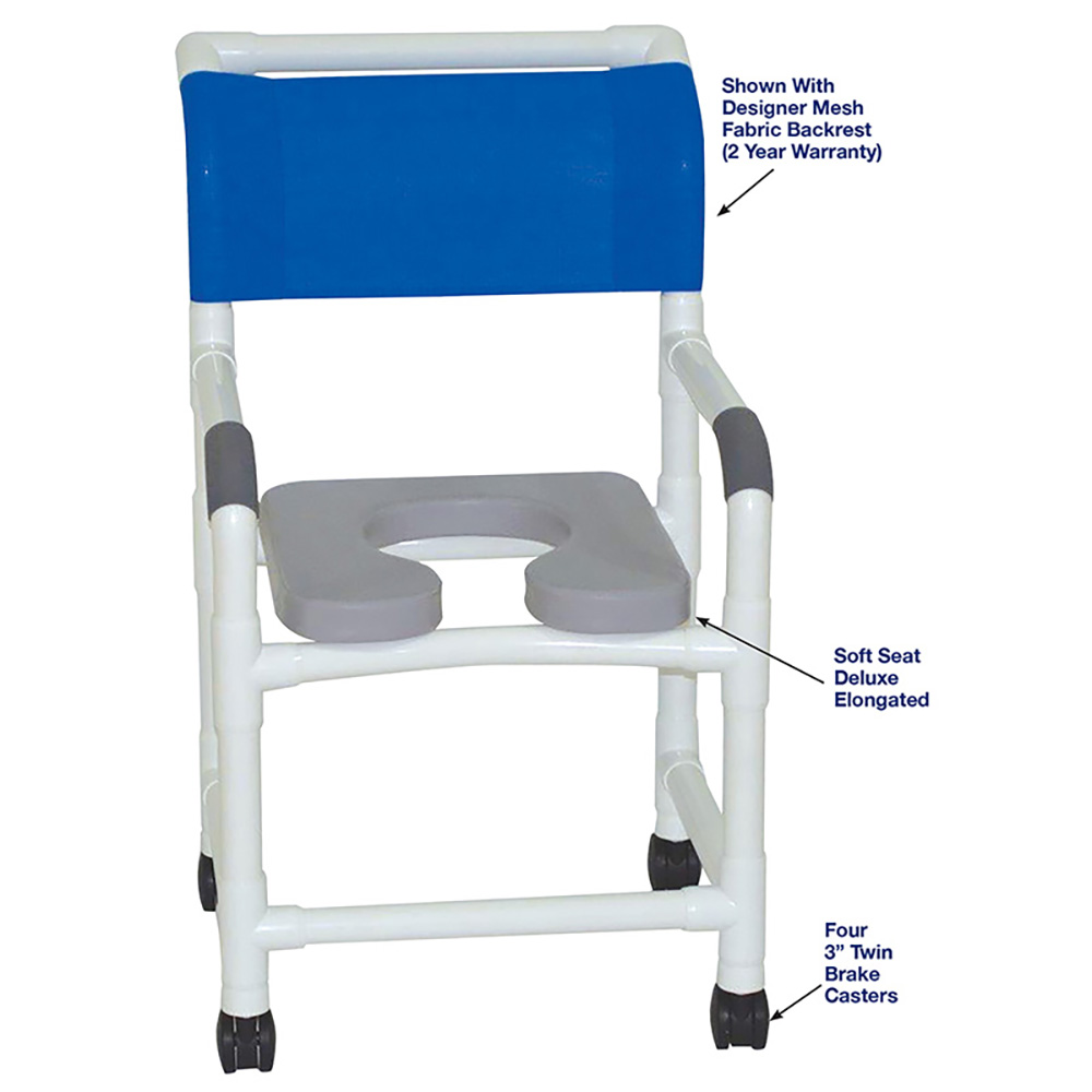 Healthcare Grade, Deluxe Elongated Open Front Soft Seat Enhances Resident Comfort, Safety Handgrips, Push/Pull Handle And Fast Drying Removable Mesh Back/Sling, Reinforced At All Stress Related Areas.