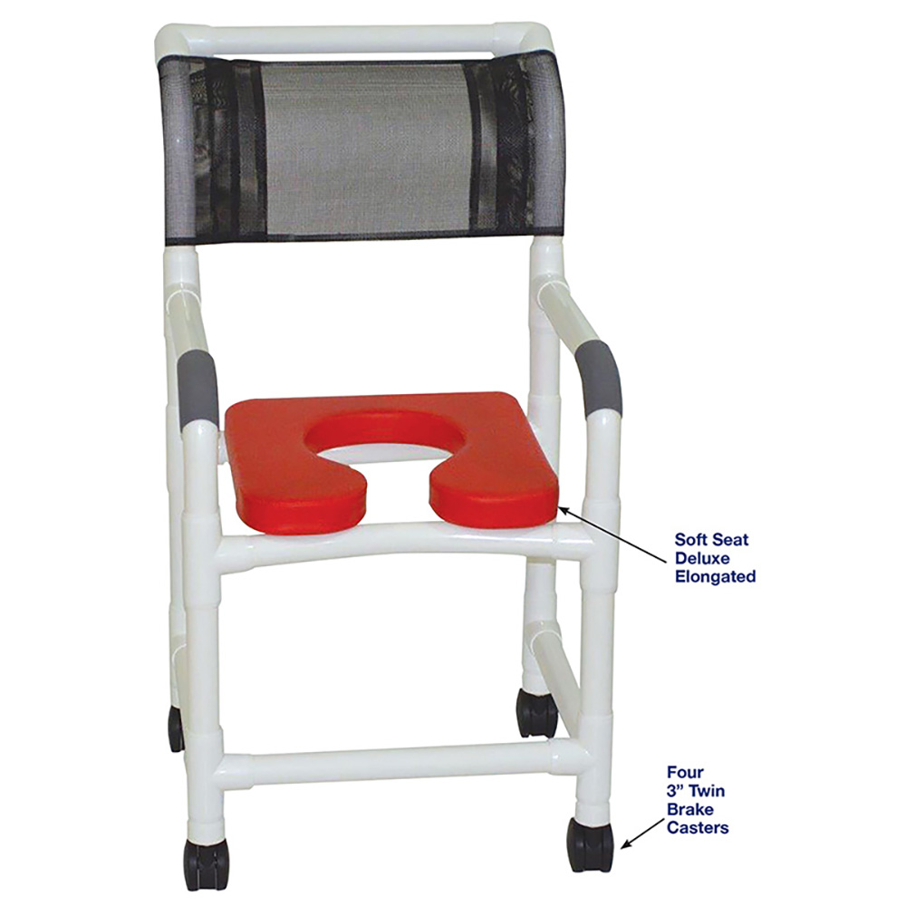 Healthcare Grade, Deluxe Elongated Open Front Soft Seat Enhances Resident Comfort, Safety Handgrips, Push/Pull Handle And Fast Drying Removable Mesh Back/Sling, Reinforced At All Stress Related Areas.