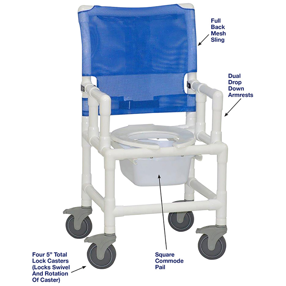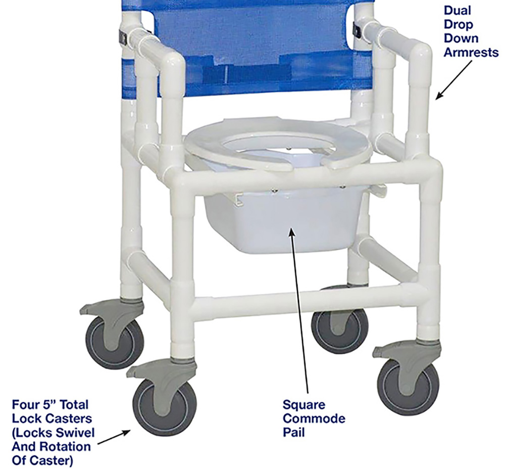 Healthcare Grade, Deluxe Elongated Open Front Seat Enhances Resident Comfort, Anti-Slip Handgrips, Push/Pull Handle And Fast Drying Removable Mesh Back/Sling, Dual Drop Arm, Reinforced At All Stress Related Areas.