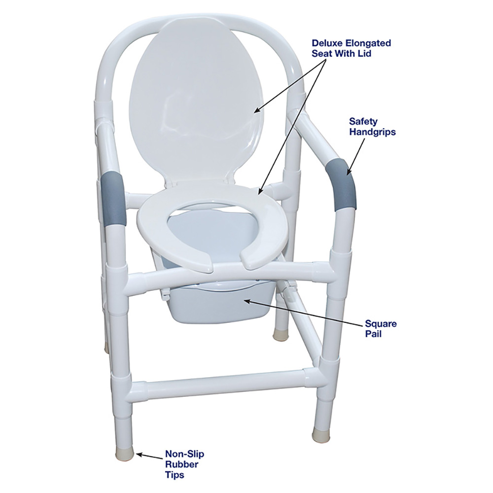 Healthcare Grade, Deluxe Elongated Seat With Lid Open Front, Square Pail, Anti-Slip Handgrips, Non-Slip Rubber Tips, Reinforced At All Stress Related Areas.