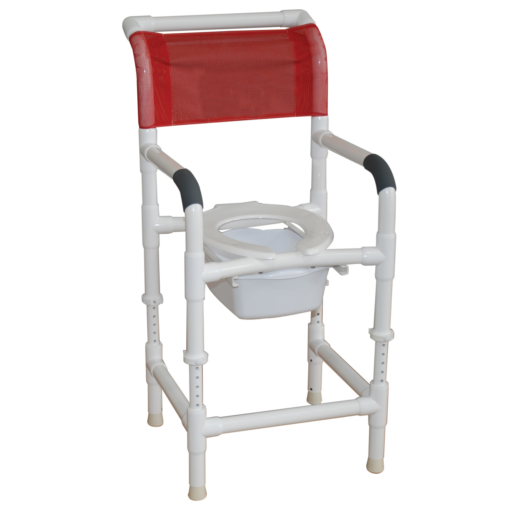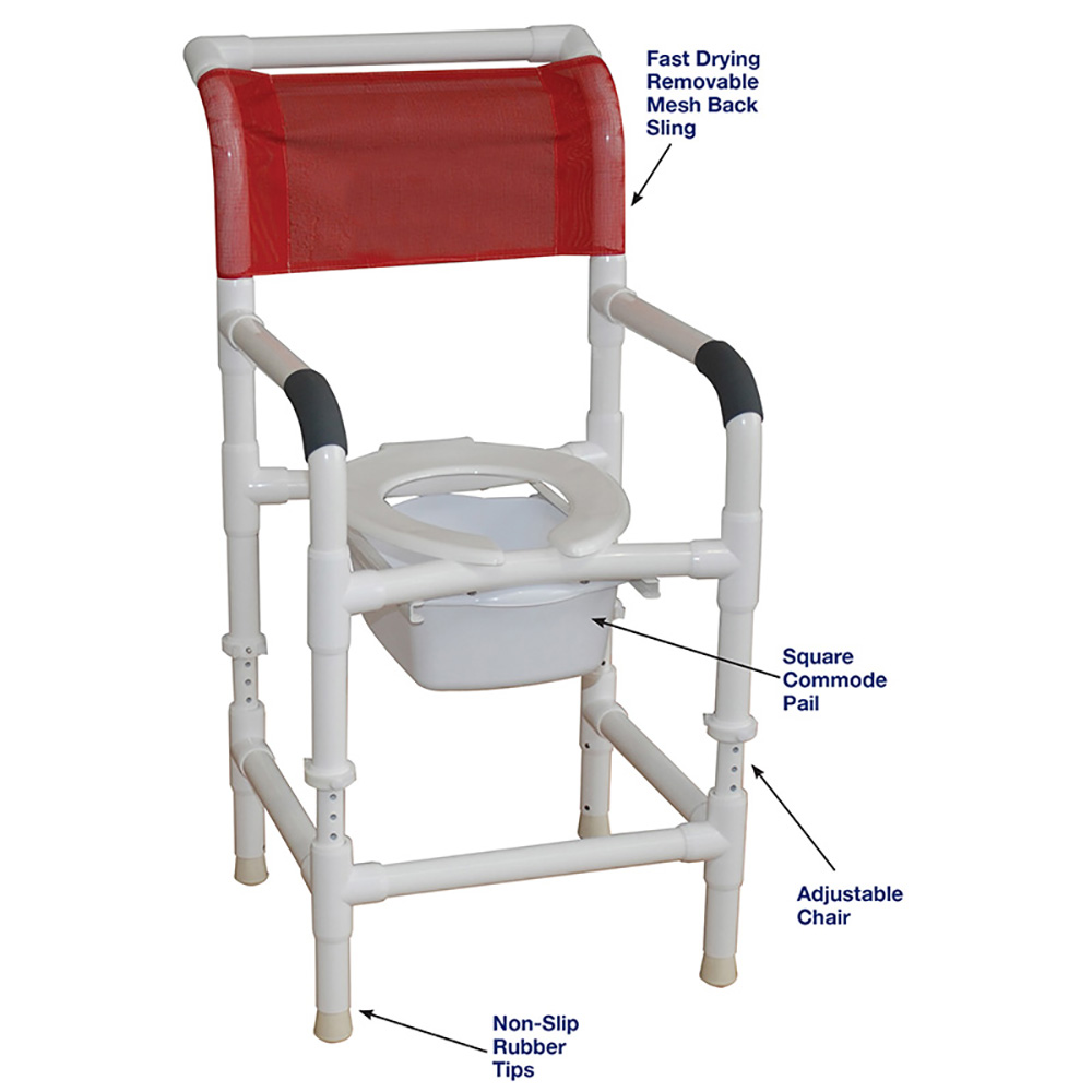 Healthcare Grade, Deluxe Elongated Open Front Seat Enhances Resident Comfort, Safety Handgrips, Fast Drying Removable Mesh Back/Sling, Non Slip Rubber Tips, Reinforced At All Stress Related Areas, Standard Deluxe Adjustable Heights.
