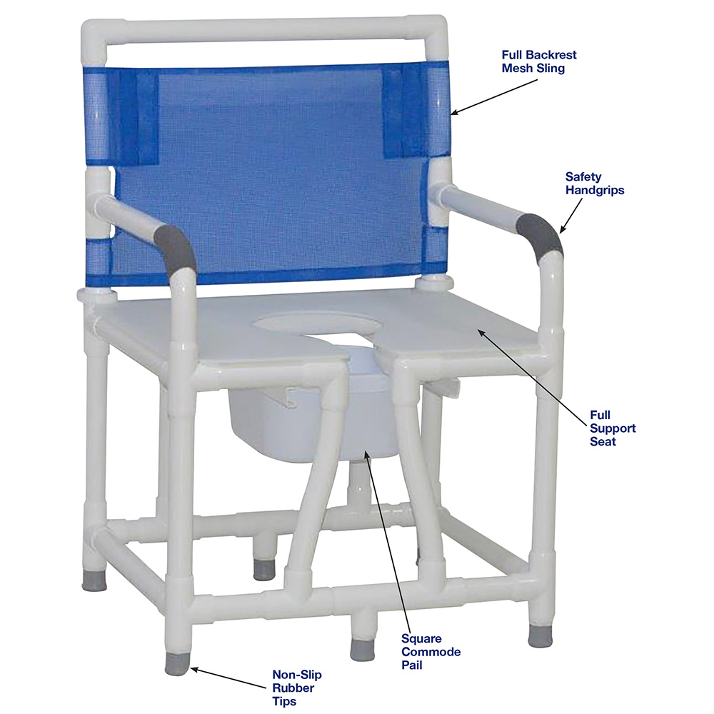 Healthcare Grade, Bariatric Bedside Commode, Non Slip Rubber Crutch Tips, Full Support Seat(High Density Polyethylene Flat Seat), 10 Quart Commode (Slide Out), Full Back Support Sling, Dual Reinforcement Throughout The Entire Frame.