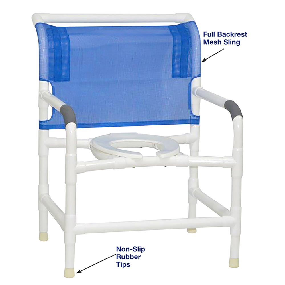 Healthcare Grade, Deluxe Elongated Open Front Seat Enhances Resident Comfort, Safety Handgrips, Fast Drying Removable Mesh Back/Sling, Reinforced At All Stress Related Areas.