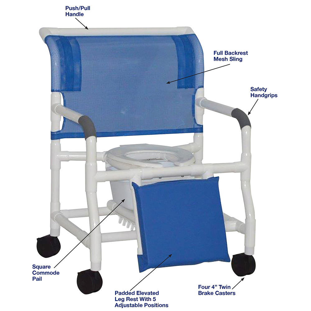 Healthcare Grade, Deluxe Enlongated Open Front Seat Enhances Resident Comfort, Safety Handgrips, Push/Pull Handle And Fast Drying Removable Mesh Back/Sling, Reinforced At All Stress Related Areas.