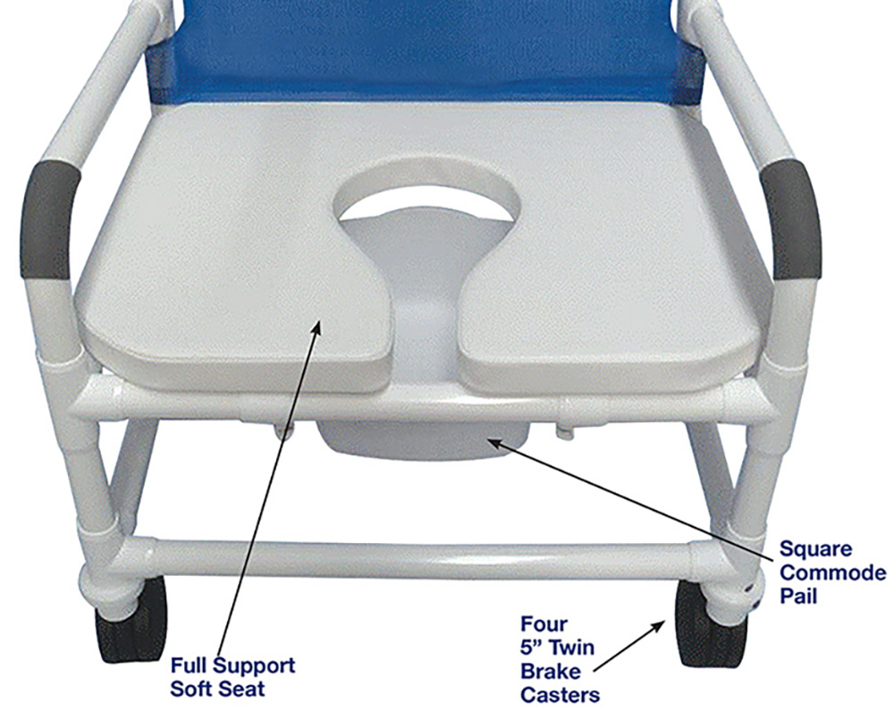 Healthcare Grade, Open Full Support Soft Seat Enhances Resident Comfort, Safety Handgrips, Push/Pull Handle And Fast Drying Removable Full Support Mesh Back/Sling, Extra-Wide Deluxe, 10 QT Slide Out Commode Pail, Reinforced At All Stress Related Areas.