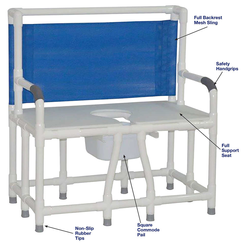 Healthcare Grade, Bariatric Bedside Commode, Non Slip Rubber Crutch Tips, Full Support Seat(High Density Polyethylene Flat Seat), 10 Quart Commode (Slide Out), Full Back Support Sling, Dual Reinforcement Throughout The Entire Frame.