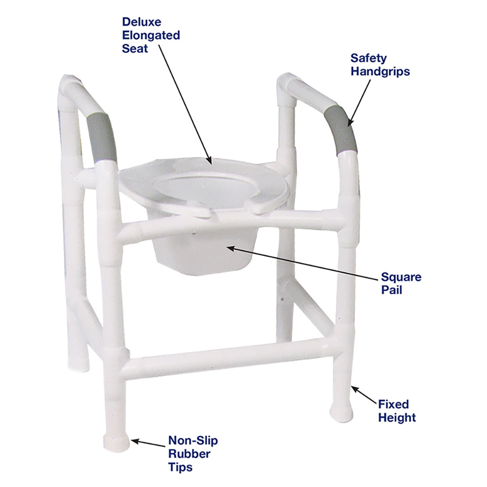 Healthcare Grade, Deluxe Elongated Open Front Seat Enhances Resident Comfort, Anti-Slip Handgrips, Non-Slip Rubber Tips, Reinforced At All Stress Related Areas.