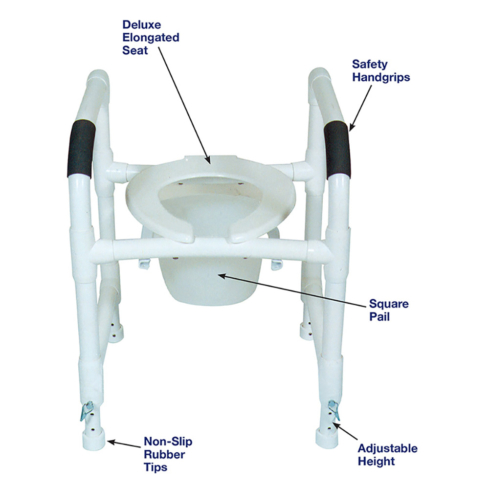 Healthcare Grade, Deluxe Elongated Open Front Seat Enhances Resident Comfort, Anti-Slip Handgrips, Non-Slip Rubber Tips, Reinforced At All Stress Related Areas.