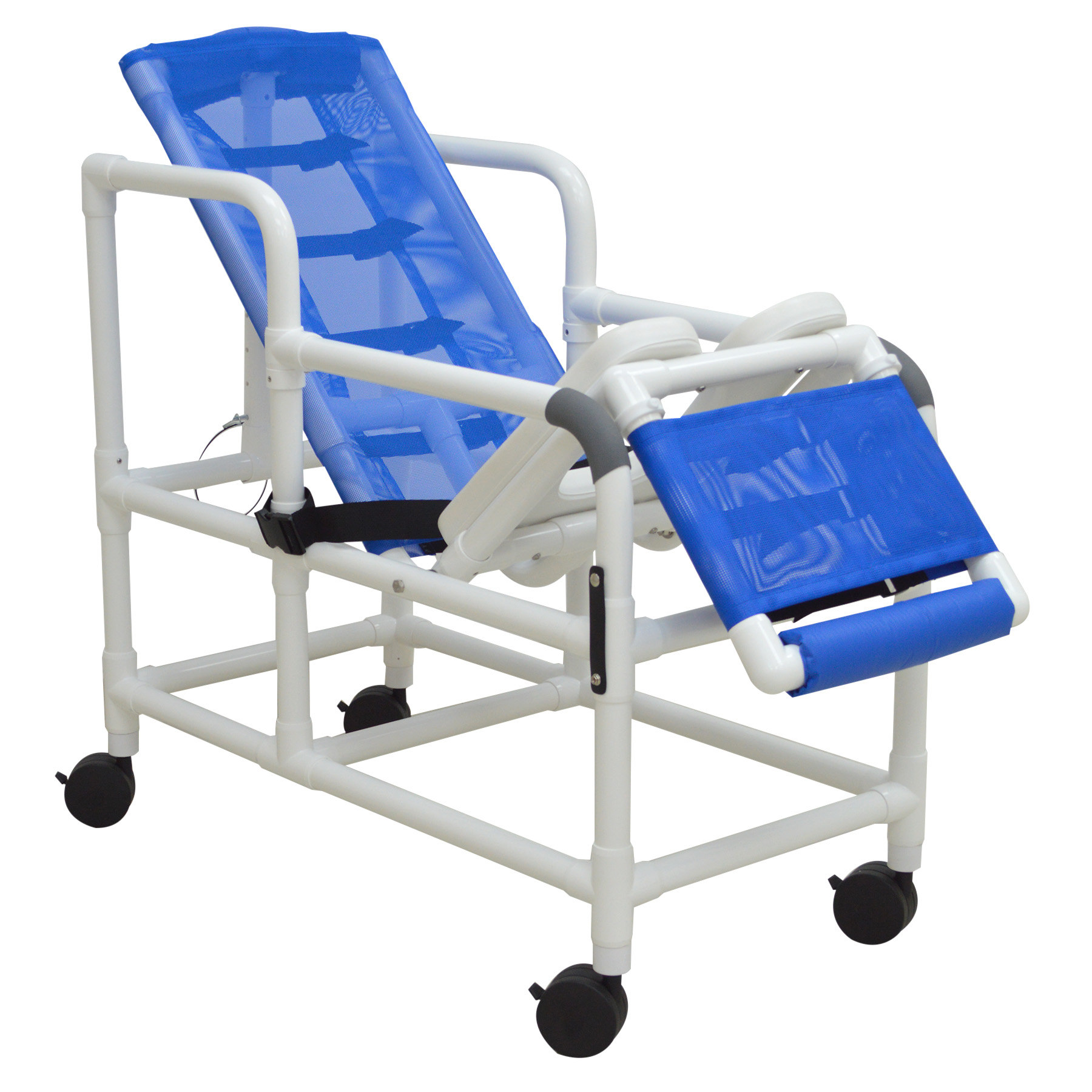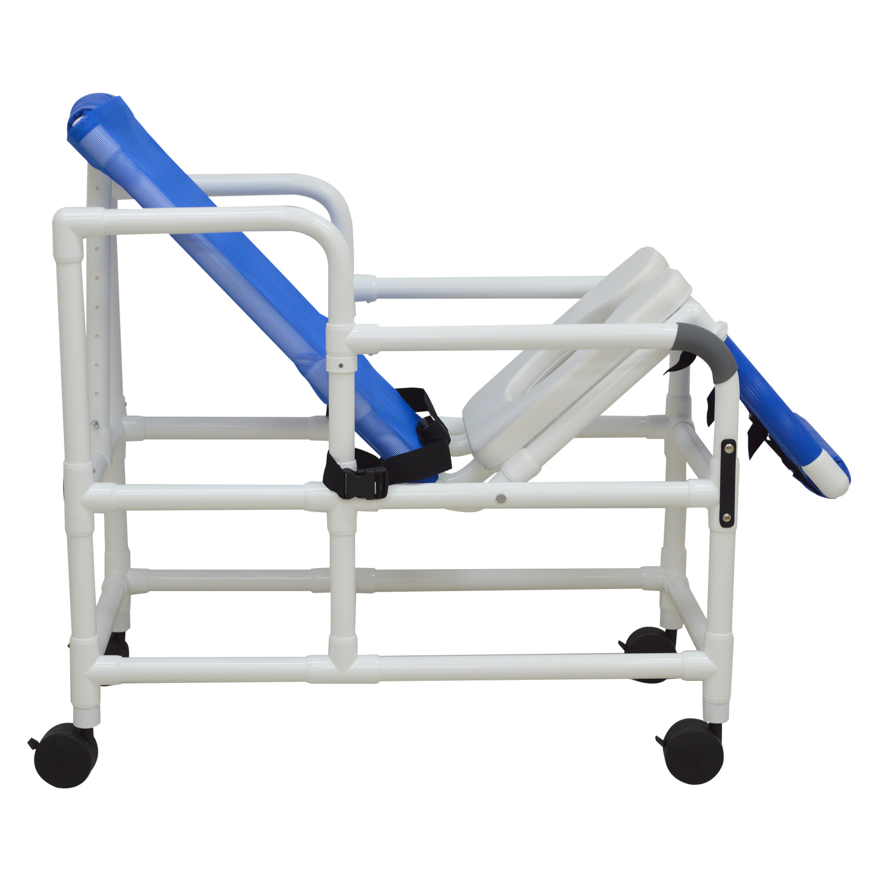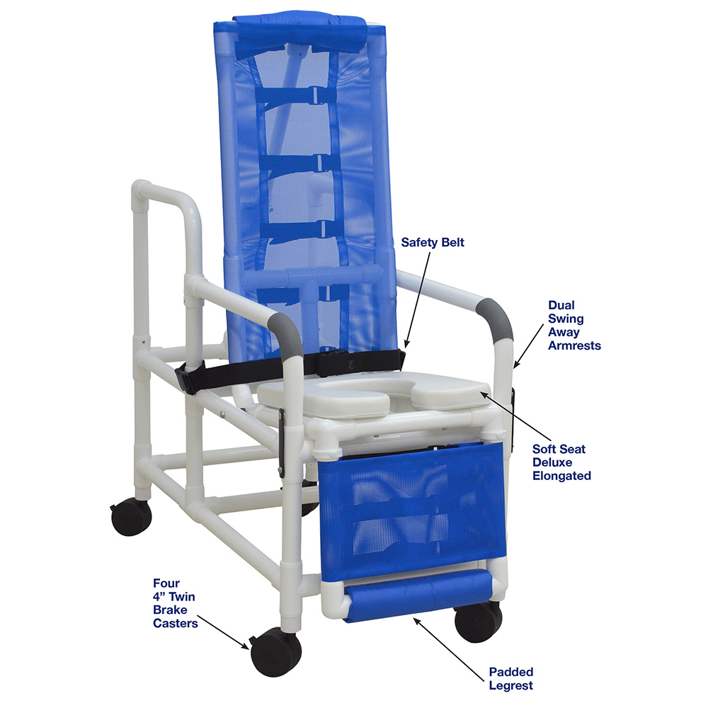 Healthcare Grade, Tilt-N- Space Shower Chair, Dual Drop Arm (Secured With Safety Vinyl Straps), Deluxe Elongated Open Front Soft Seat, 7 Positions To Accommodate All Your Needs, Comes With Safety Belt, Reinforced At All Stress Related Areas, Must Be Used With Assistance.