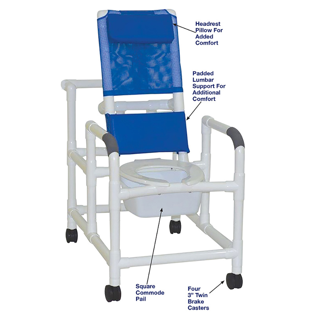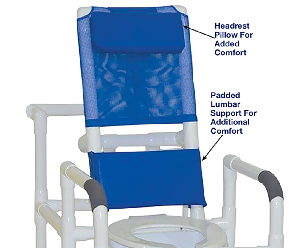 Healthcare Grade, Deluxe Elongated Open Front Seat Enhances Resident Comfort, Safety Handgrips And Fast Drying Removable Mesh Back/Sling, Reinforced At All Stress Related Areas.