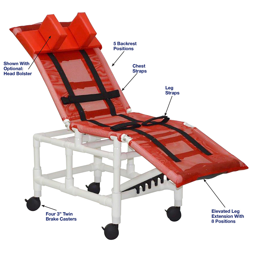 Healthcare Grade, Reinforced At All Stress Related Areas, Multi-Positioning Shower Chair, 5 Backrest Positions, Elevated Leg Extension With 8 Positions, Chest and Leg Straps Can Be Adjusted And Repositioned for Comfort And Security, Small Bath Chair Fits In Standard Size Bath Tubs.