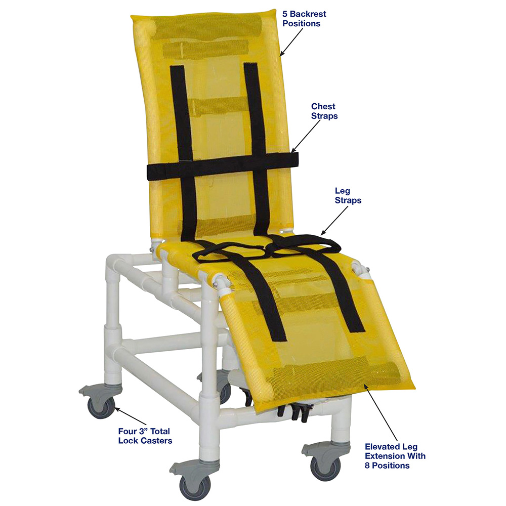 Healthcare Grade, Reinforced At All Stress Related Areas, Multi-Positioning Shower Chair, 5 Backrest Positions, Elevated Leg Extension With 8 Positions, Chest and Leg Straps Can Be Adjusted And Repositioned for Comfort And Security, Small Bath Chair Fits In Standard Size Bath Tubs.