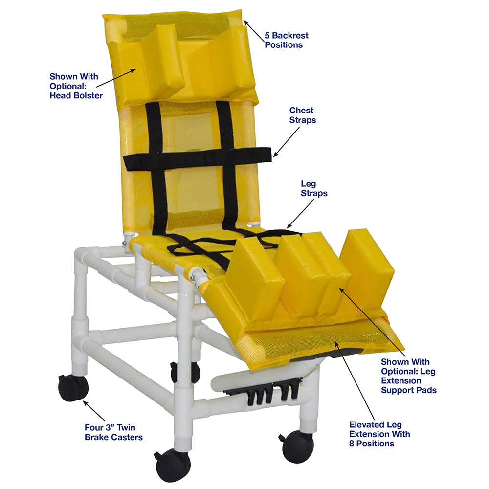 Healthcare Grade, Reinforced At All Stress Related Areas, Multi-Positioning Shower Chair, 5 Backrest Positions, Elevated Leg Extension With 8 Positions, Chest and Leg Straps Can Be Adjusted And Repositioned for Comfort And Security, Small Bath Chair Fits In Standard Size Bath Tubs.