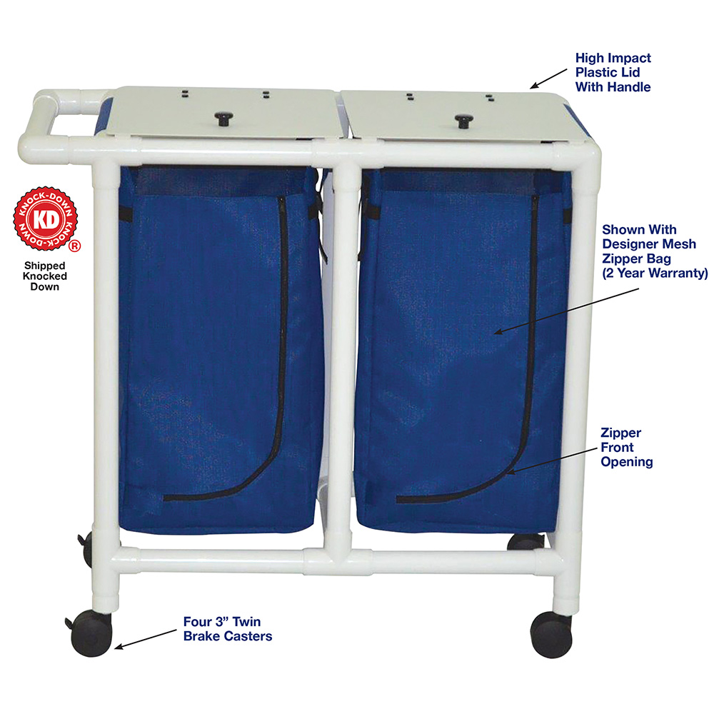 All MJM's Zipper Front Opening Hampers Help Prevent Back Injuries. Shown With Designer Mesh Zipper Bag (2 Year Warranty).