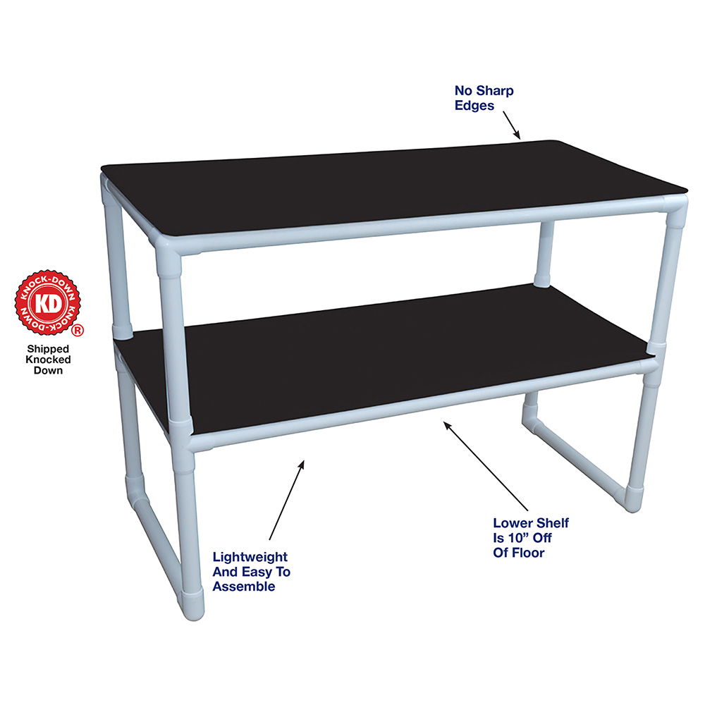 Healthcare Grade, All Casters Are Reinforced, Rust Proof Frame, Lower Shelf Is 10" Off Floor For Easy Access, Shelves Are Of Durable High Impact Plastic, Lightweight, Ships Knocked Down And Easy to Assembl.