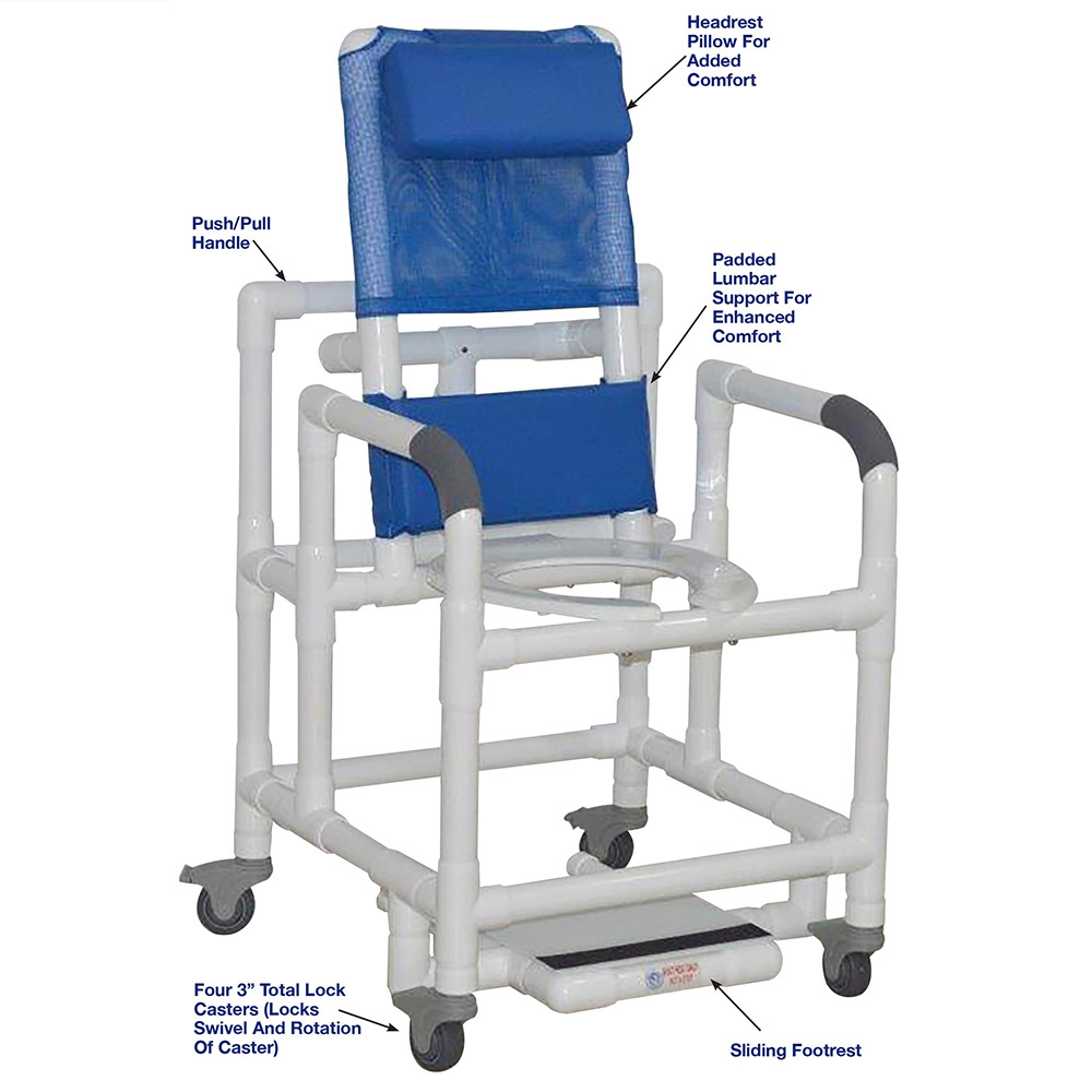Healthcare Grade, Compact Shower Chair With Non-Reclining Backrest, Deluxe Elongated Open Front Seat Enhances Resident Comfort, Safety Handgrips And Fast Drying Removable Mesh Back/Sling, Sliding Footrest, 3” Total Lock Casters (Locks Swivel And Rotation Of Caster), Reinforced At All Stress Related Areas.