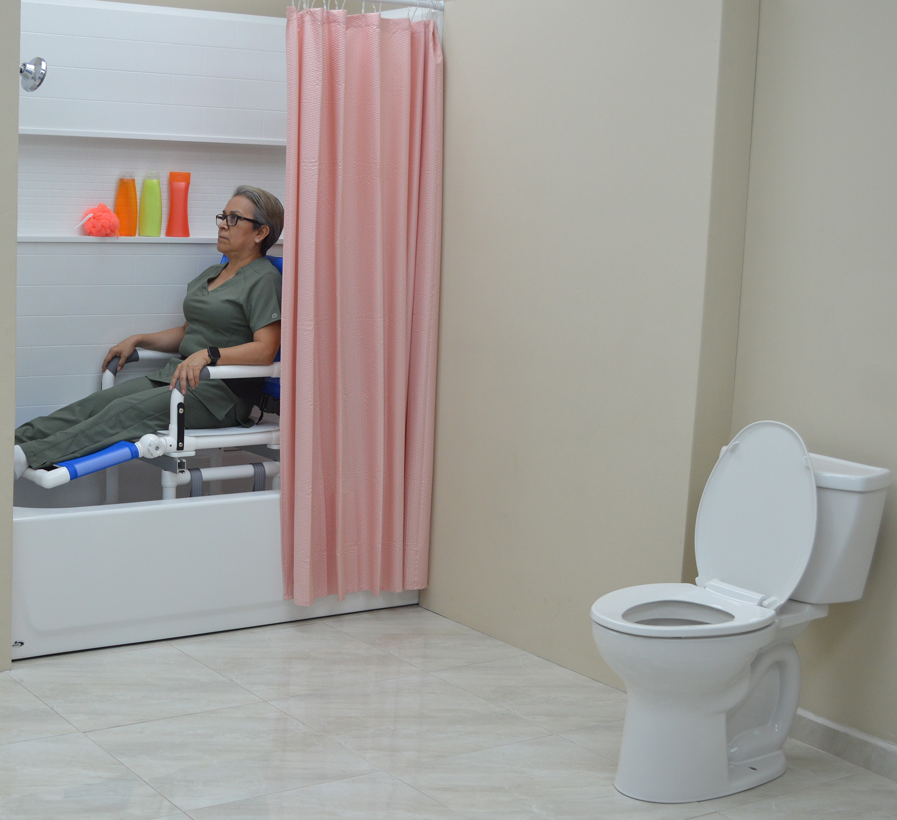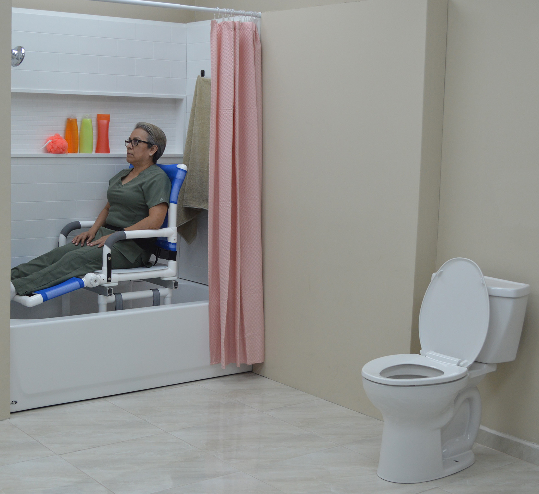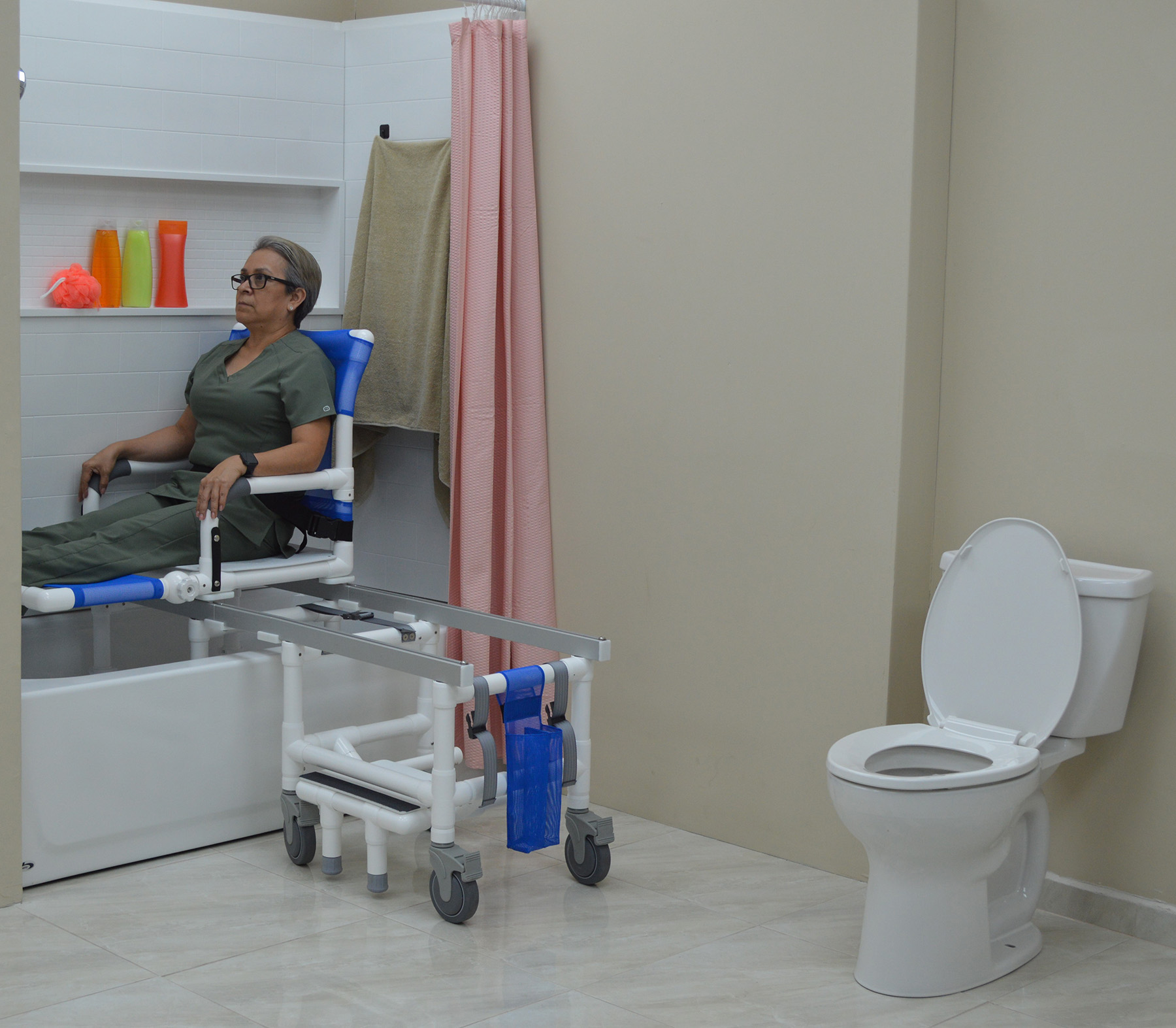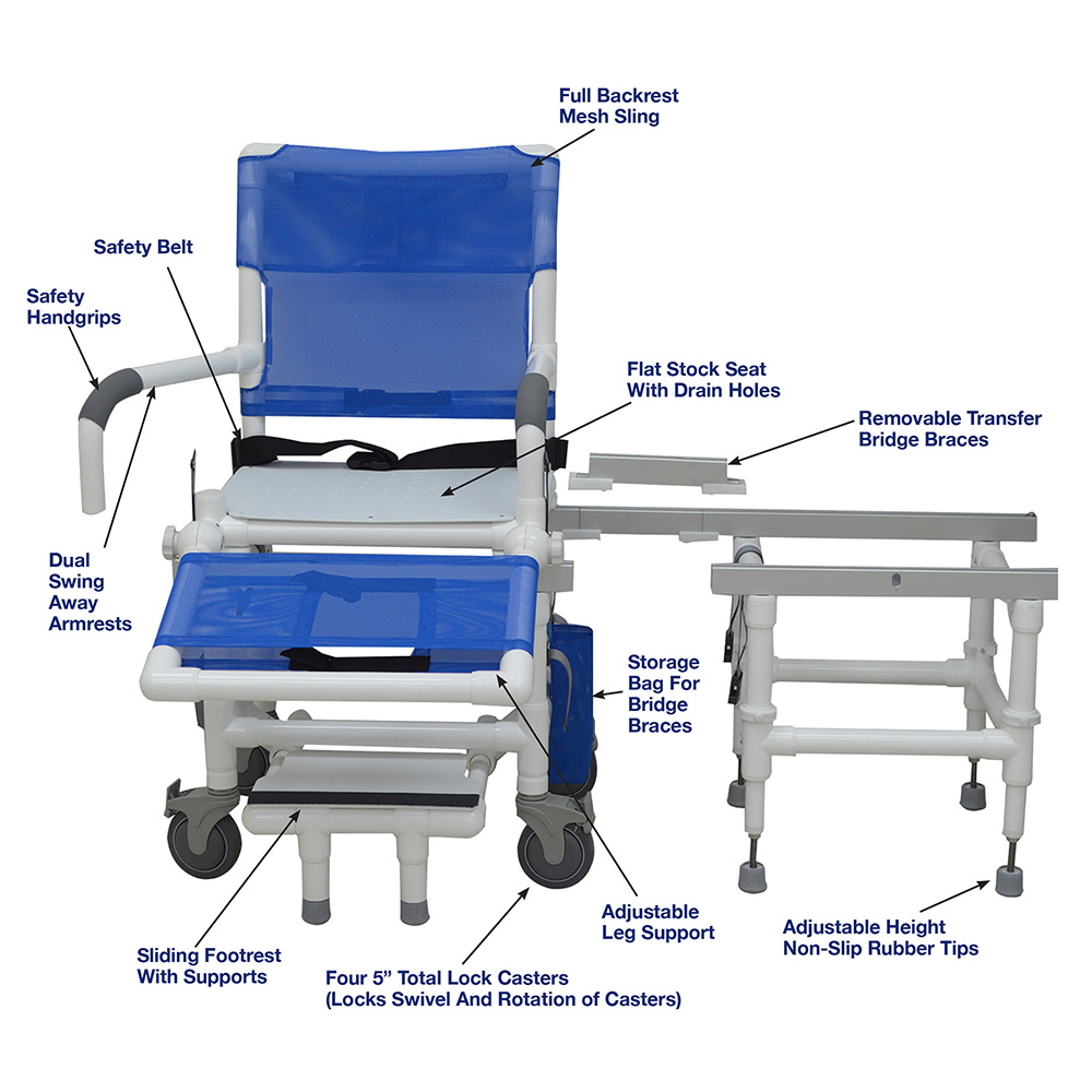 MJM’s Dual Shower/Transferchairs Reduce The Need For Unnecessary Transfers Thus Creating A Safe And Secure Environment For Toileting And Bathing. Our Unique Removable Transfer Bridge Braces Allow For The Tub/Shower Section Of The Chair To Fit Completely In The Tub Or Shower Stall Permitting Closure Of A Shower Curtain Or Shower Door For Privacy.