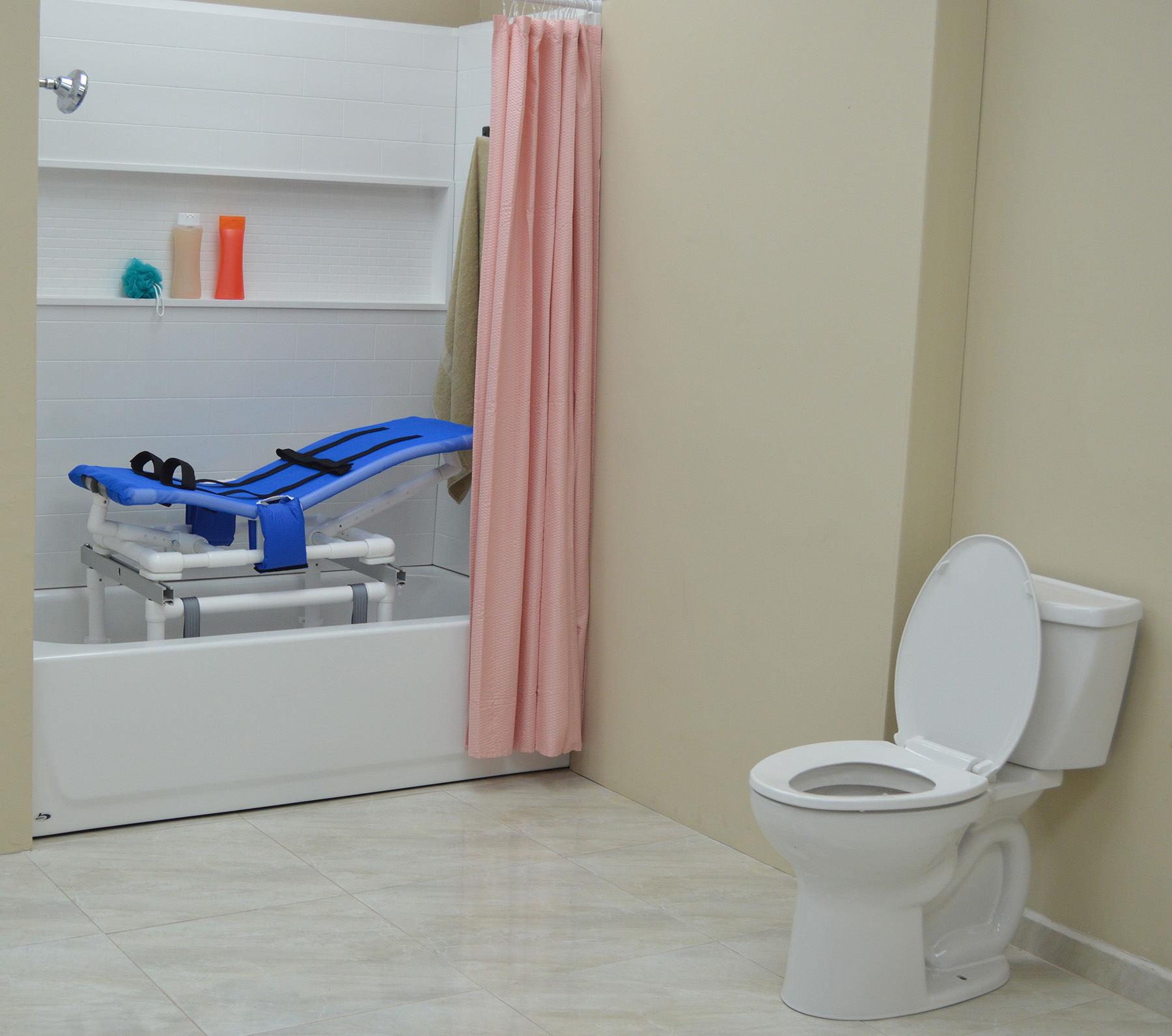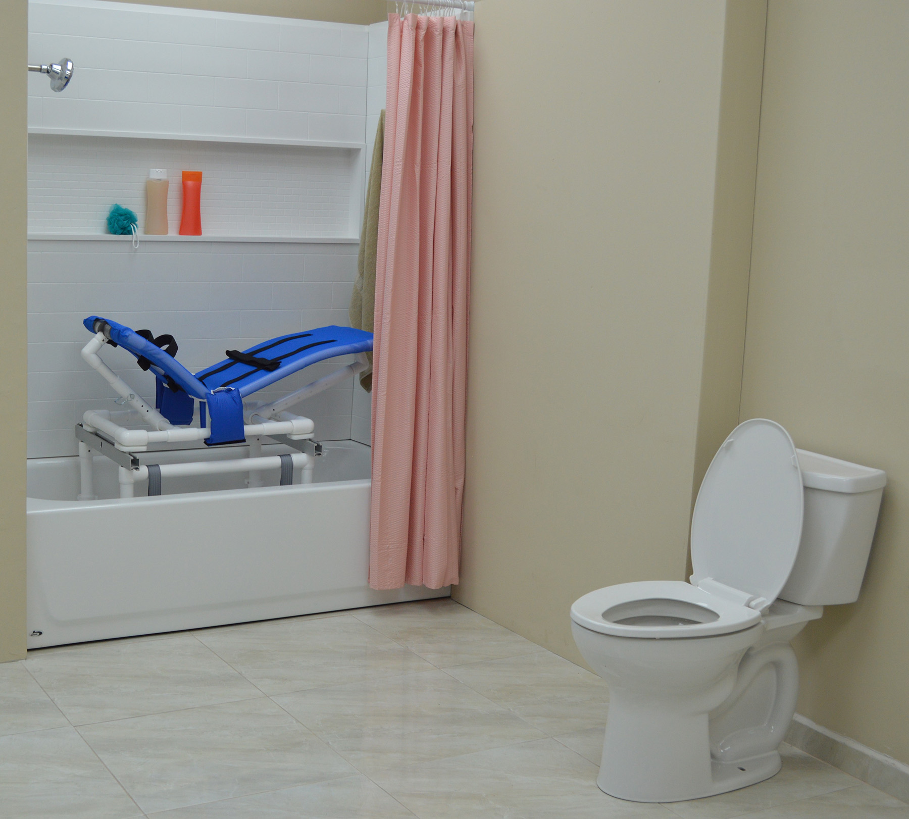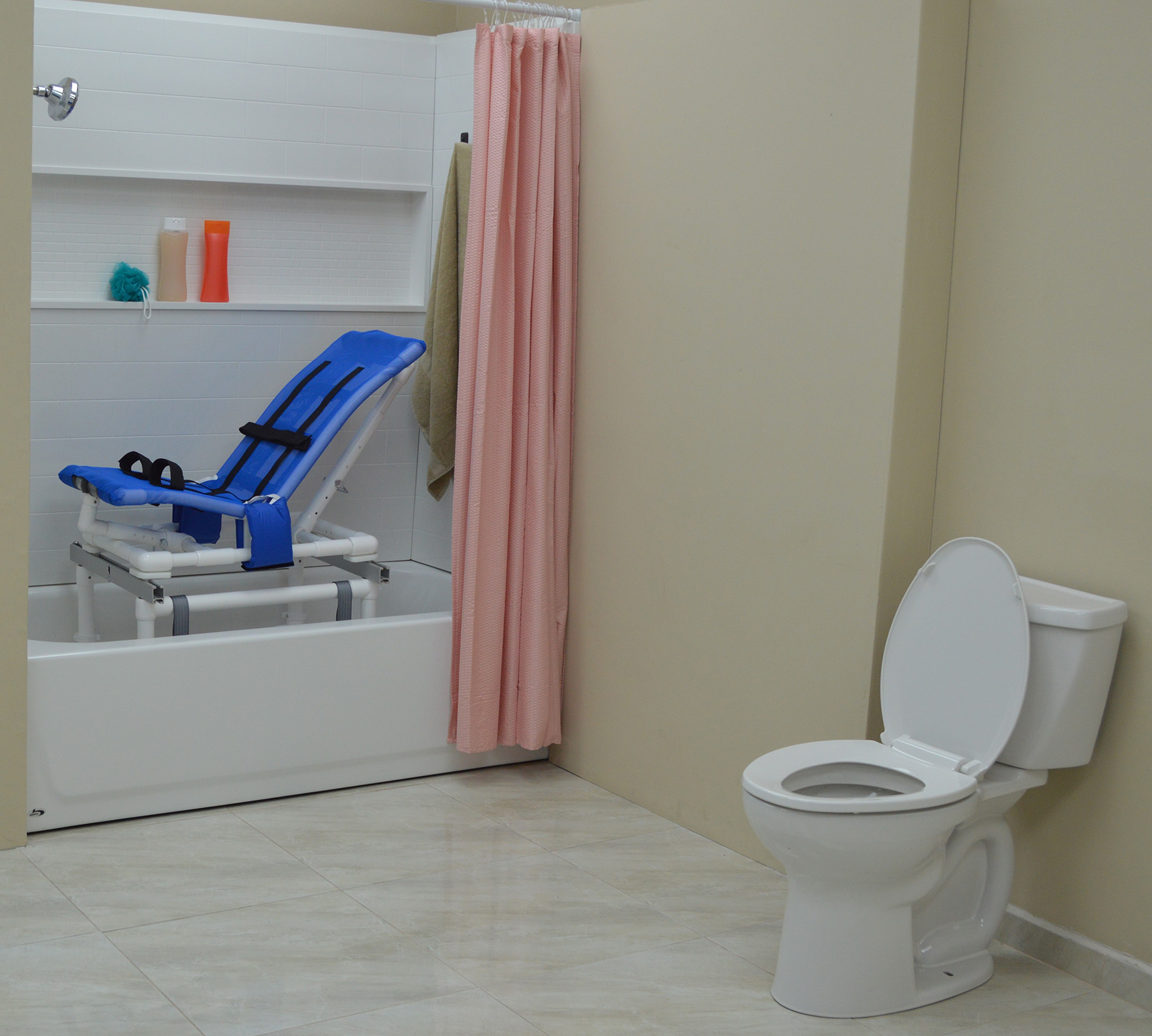 MJM’s Dual Shower/Transferchairs Reduce The Need For Unnecessary Transfers Thus Creating A Safe And Secure Environment For Toileting And Bathing. Our Unique Removable Transfer Bridge Braces Allow For The Tub/Shower Section Of The Chair To Fit Completely In The Tub Or Shower Stall Permitting Closure Of A Shower Curtain Or Shower Door For Privacy.