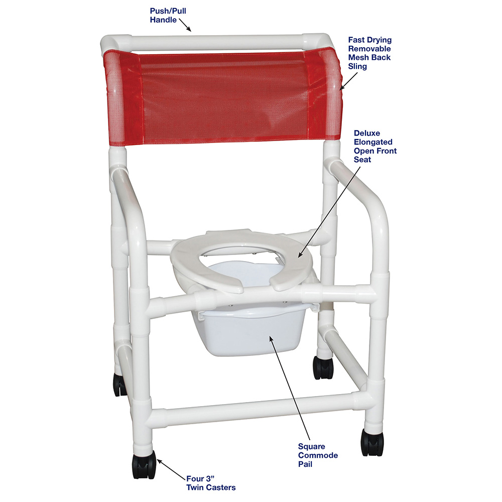 Healthcare Grade, Deluxe Elongated Open Front Seat Enhances Resident Comfort, Push/Pull Handle And Fast Drying Removable Mesh Back/Sling, Square Pail, Reinforced At All Stress Related Areas.