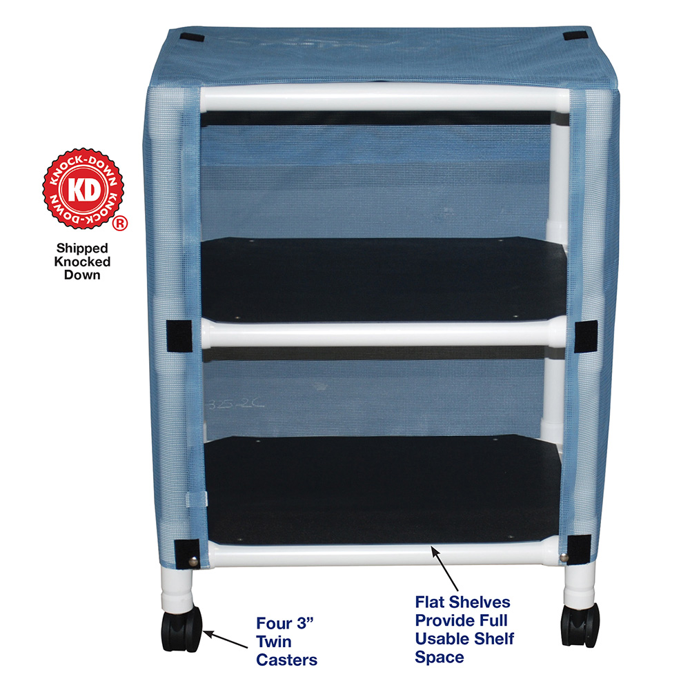 Healthcare Grade, All Casters Are Reinforced, Flat Shelves Provide Full Usable Shelf Space, Velcro Closure.