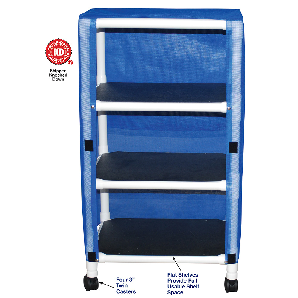 Healthcare Grade, All Casters Are Reinforced, Flat Shelves Provide Full Usable Shelf Space, Velcro Closure.