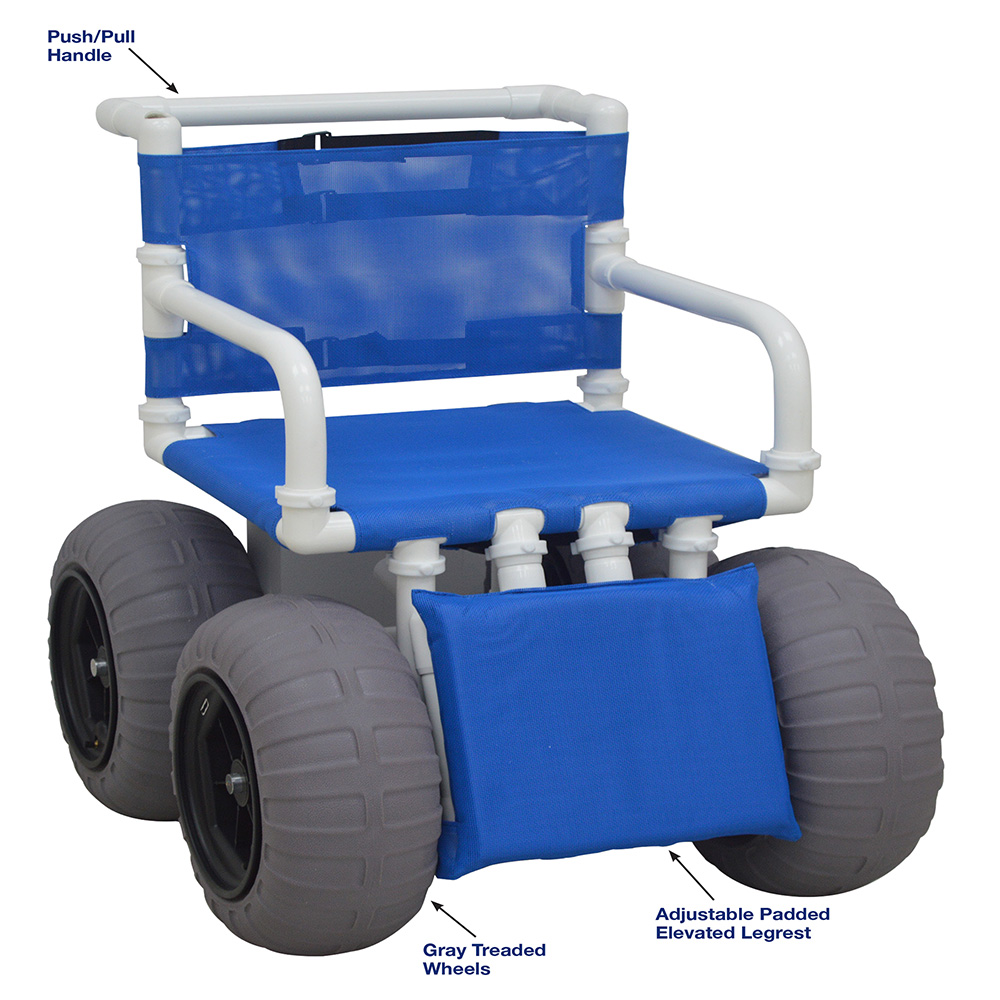 Healthcare Grade, Reinforced At All Stress Related Areas, Echo Recreational Chair 20” Internal Width, Sling Seat, Elevating Leg Rest, Gray Treaded Wheels with a Free Air Hand Pump, 250 Lbs Weight Capacity.