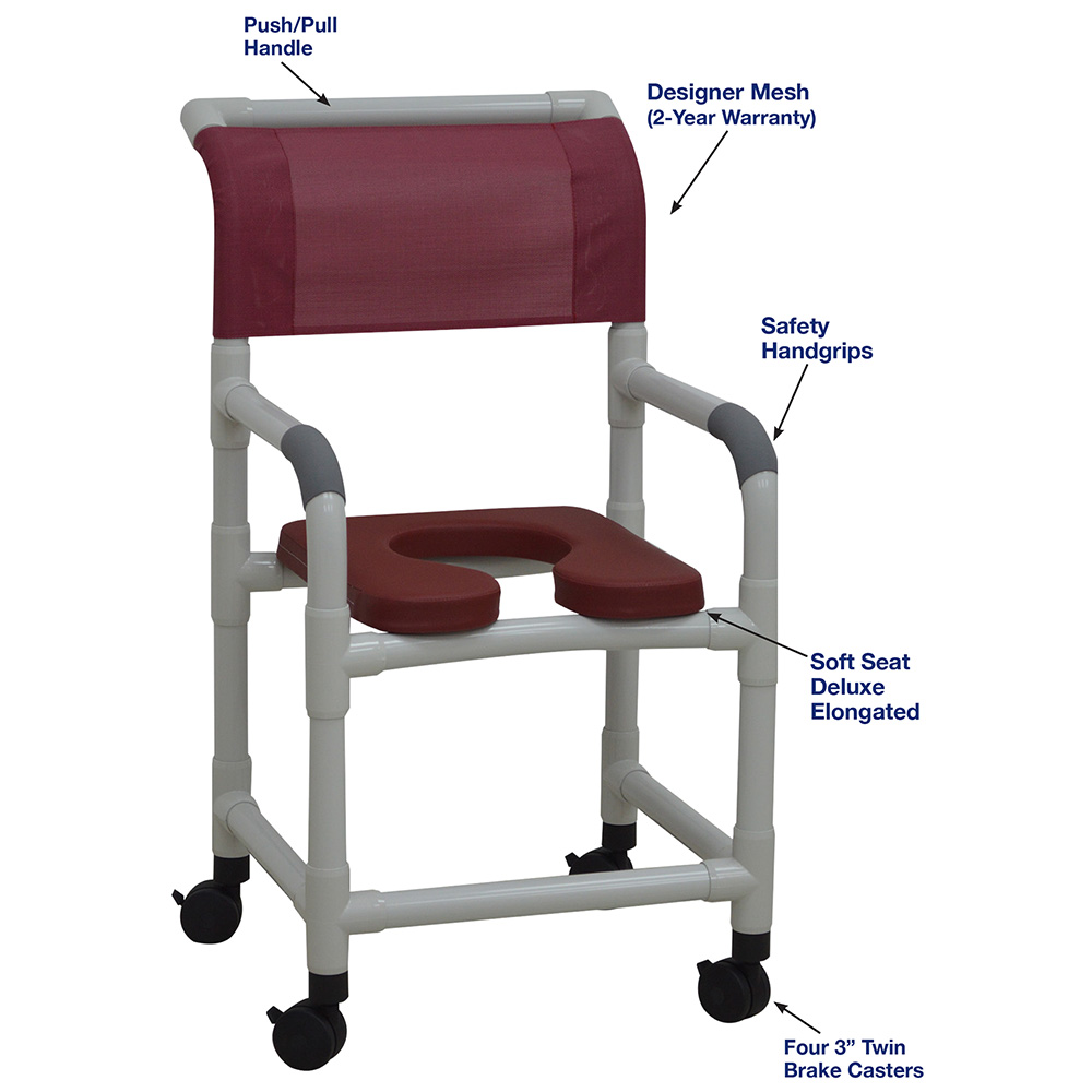 Healthcare Grade, Deluxe Elongated Open Front Soft Seat Enhances Resident Comfort, Safety Handgrips, Push/Pull Handle And Fast Drying Removable Mesh Back/Sling, Reinforced At All Stress Related Areas.