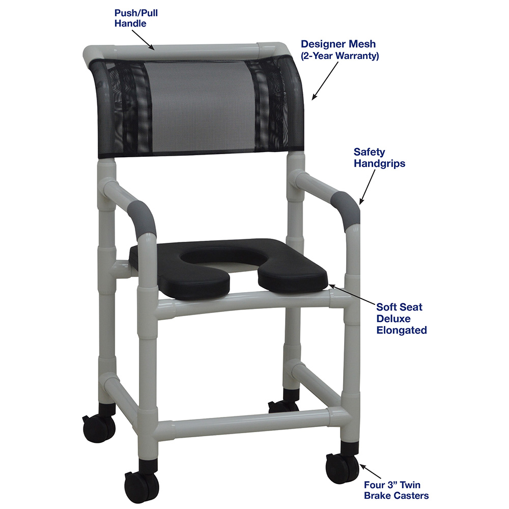 Healthcare Grade, Deluxe Elongated Open Front Soft Seat Enhances Resident Comfort, Safety Handgrips, Push/Pull Handle And Fast Drying Removable Mesh Back/Sling, Reinforced At All Stress Related Areas.