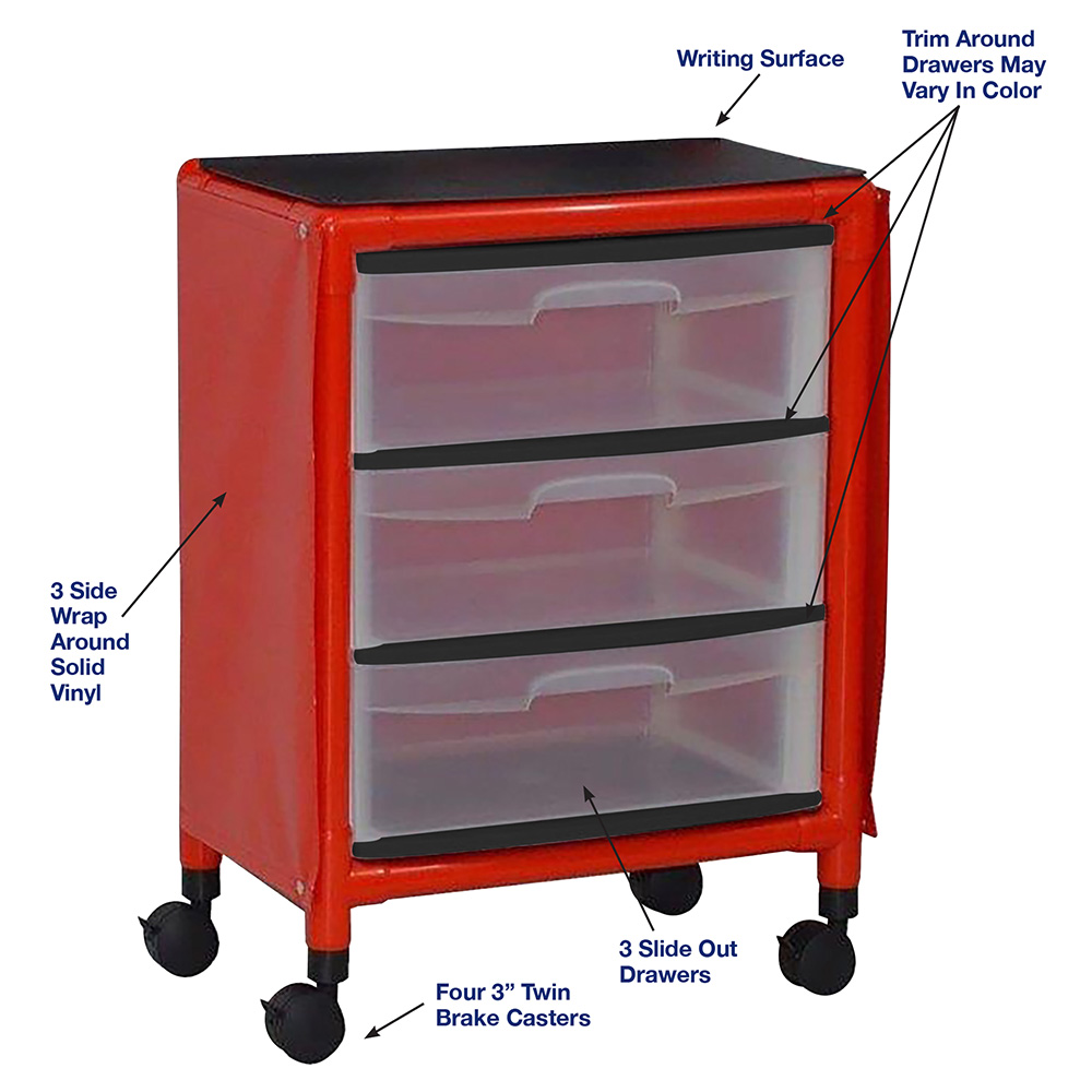 Healthcare Grade, All Casters Are Reinforced, Distribution Cart For Every Need With No Back Panels, Reinforced At All Stress Related Areas, Universal Cart With 3 Slide Out Drawers (Trim Around Drawers May Vary In Color).
