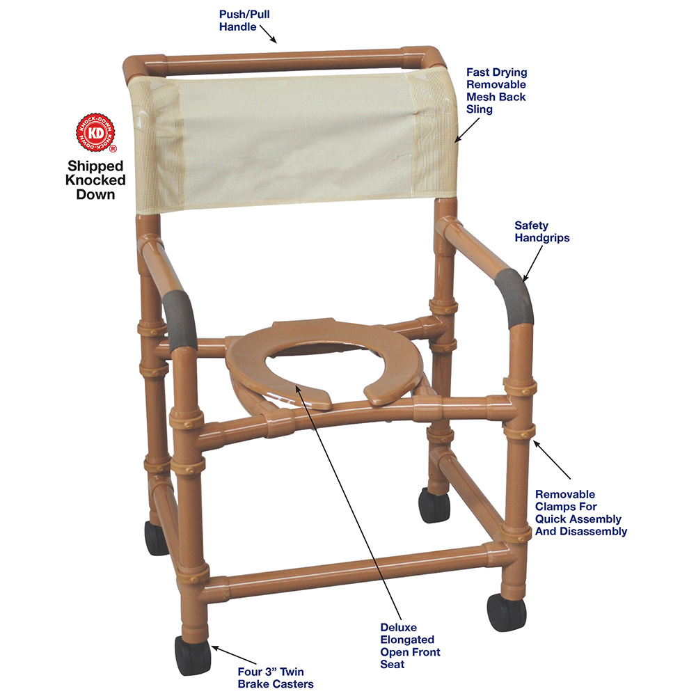 Healthcare Grade, Deluxe Elongated Open Front Seat Enhances Resident Comfort, Safety Handgrips, Push/Pull Handle And Fast Drying Removable Mesh Back/Sling,Reinforced At All Stress Related Areas, Mid-Size Shower Chair.