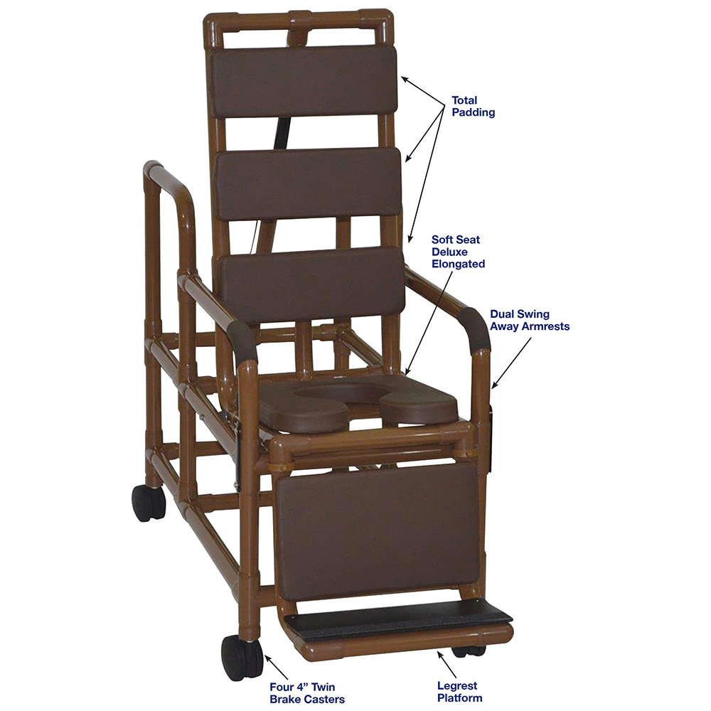 WoodTone MJM-Tilt Shower Commode Chair And Soft Seat Deluxe Elongated With Total Padding