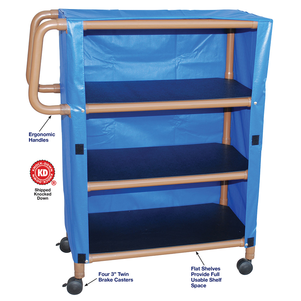 Healthcare Grade, All Casters Are Reinforced, Flat Shelves Provide Full Usable Shelf Space, Velcro Closure, Ergonomic Handles Help Reduce Wrist Injuries.