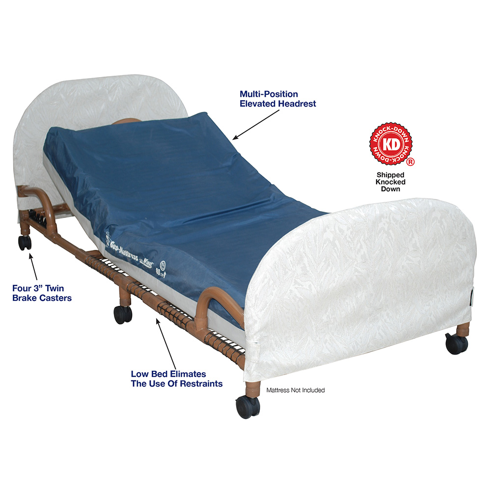 Healthcare Grade, Reinforced At All Stress Related Areas, Low Beds Eliminate The Use Of Restraints, Decks Can Be Easily Cleaned, Double Walled Support At All Stress Points, Multi-Position Elevated Headrest.